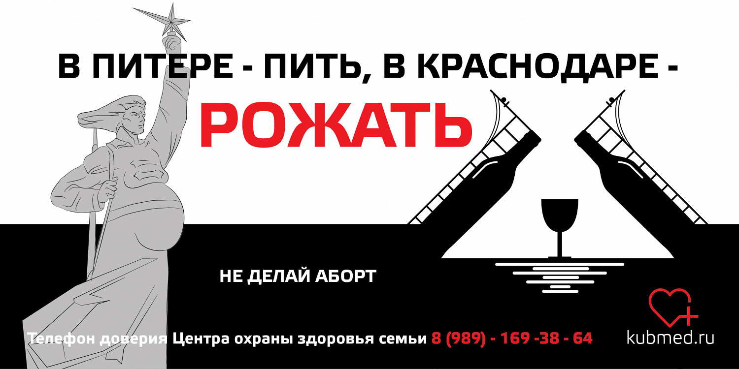 Рекламные баннеры на сайте призывают не делать аборты, следить за давлением и весом, воздерживаться от алкоголя и делать прививки. На изображениях неоднозначные слоганы, вроде: «В Питере ― пить, в Краснодаре ― рожать», «Жирное сексуальным не бывает», «Не ссы, рожай», «Кури, бухай, рожай уродов» и «Не жди, когда о твоем диагнозе узнают в морге».
