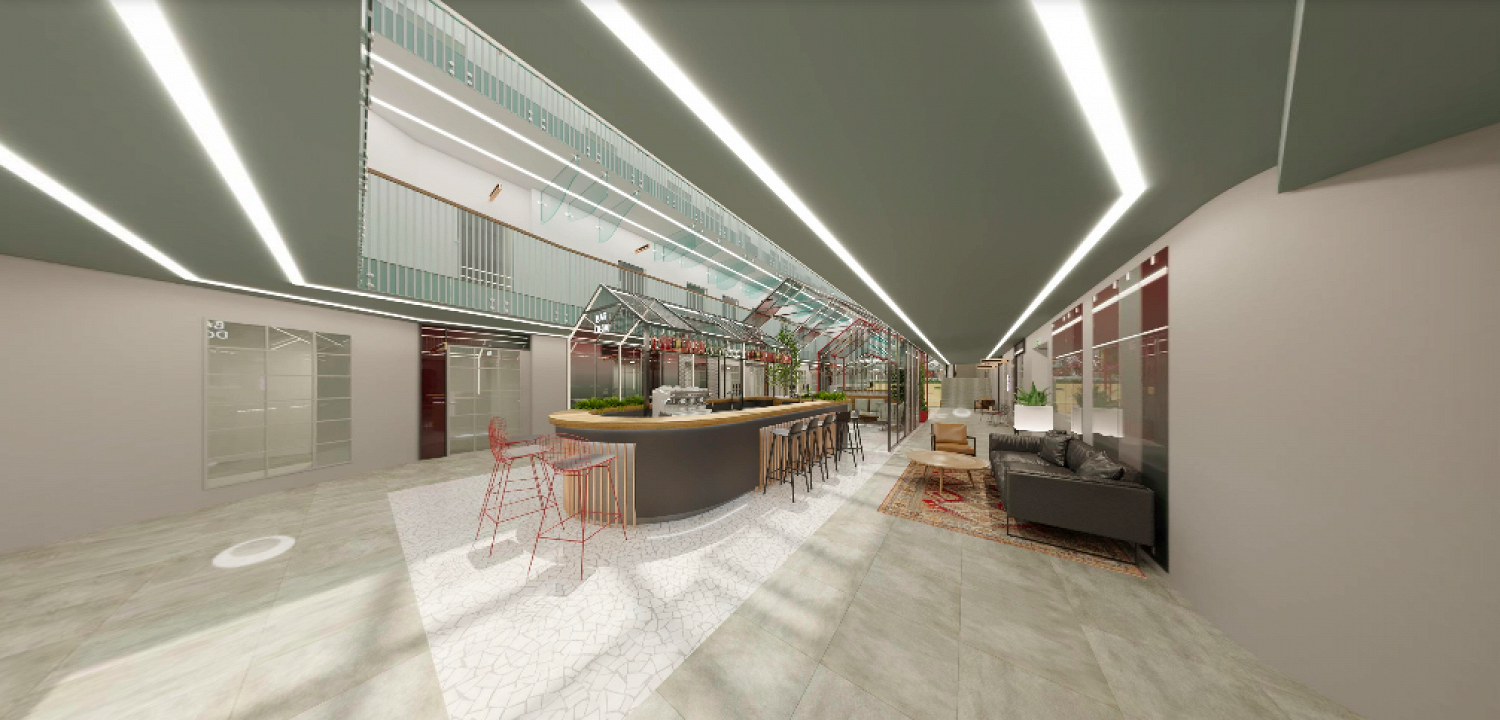 Пространство будет состоять из шести этажей общей площадью 6500 квадратных метров и пассажем со стеклянной крышей. На них планируют разместить коворкинг «Практик», фуд-маркет, магазины местных дизайнеров, бьюти-станции, спортивную секцию и другие. Пространство откроют в начале сентября.