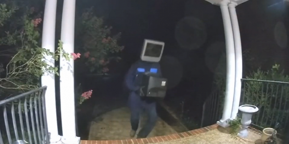 Камеры видеонаблюдения, установленные на некоторых домах, сняли человека в синей одежде и с корпусом телевизора, надетым на голову. Неизвестно, кто это и зачем он оставляет телевизоры у домов, но местные жители уже назвали его Теле-Санта-Клаусом.