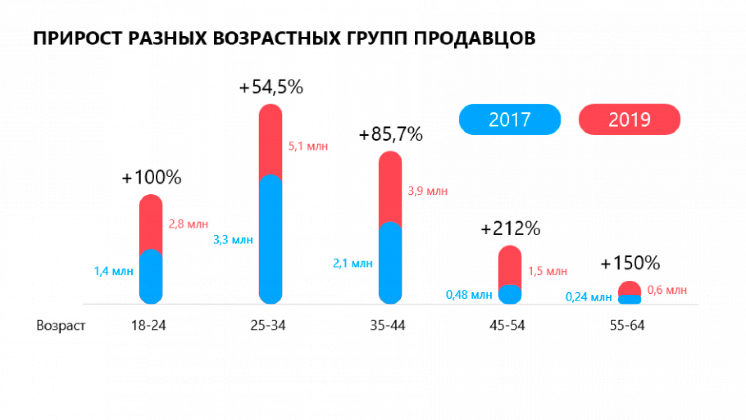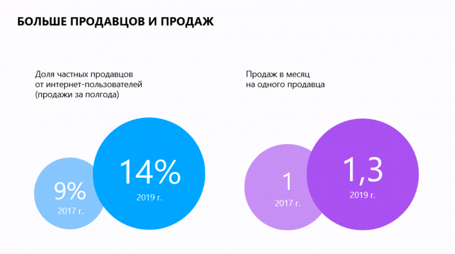 При этом количество частных продавцов растет быстрее, чем количество покупателей, за два года изменилось и их соотношение: если в 2017 году было 8 млн продавцов и 10 млн покупателей, то в этом году уже 14 млн авторов объявлений в интернете и всего 12 млн покупателей, говорится в исследовании.