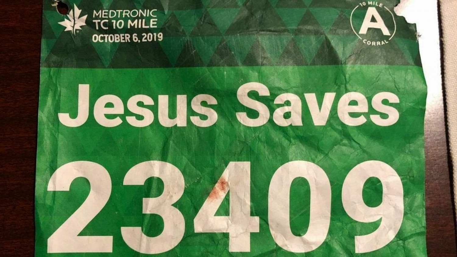 Участник американского марафона Twin Cities Marathon — 25-летний Тайлер Мун — решил зарегистрироваться на мероприятие не под своим именем, а под фразой «Иисус спасает» (Jesus Saves). Позже бегун признался, что такая надпись показалась ему подходящей, так как он религиозный человек.