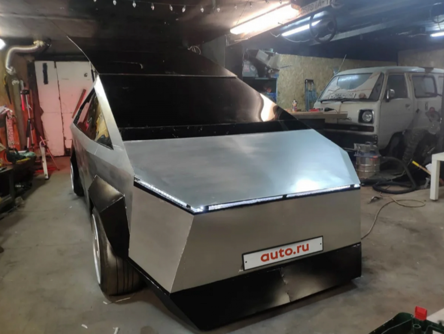 Основой для копии Cybertruck стал отечественный ВАЗ-2109. Автомобиль появился за восемь дней, на его создание у команды ушло более 80 тыс. рублей. Машина получила двигатель на 1,6 литра и механическую коробку передач. Корпус сделали из металлических листов, а вместо стекол установили поликарбонат.
