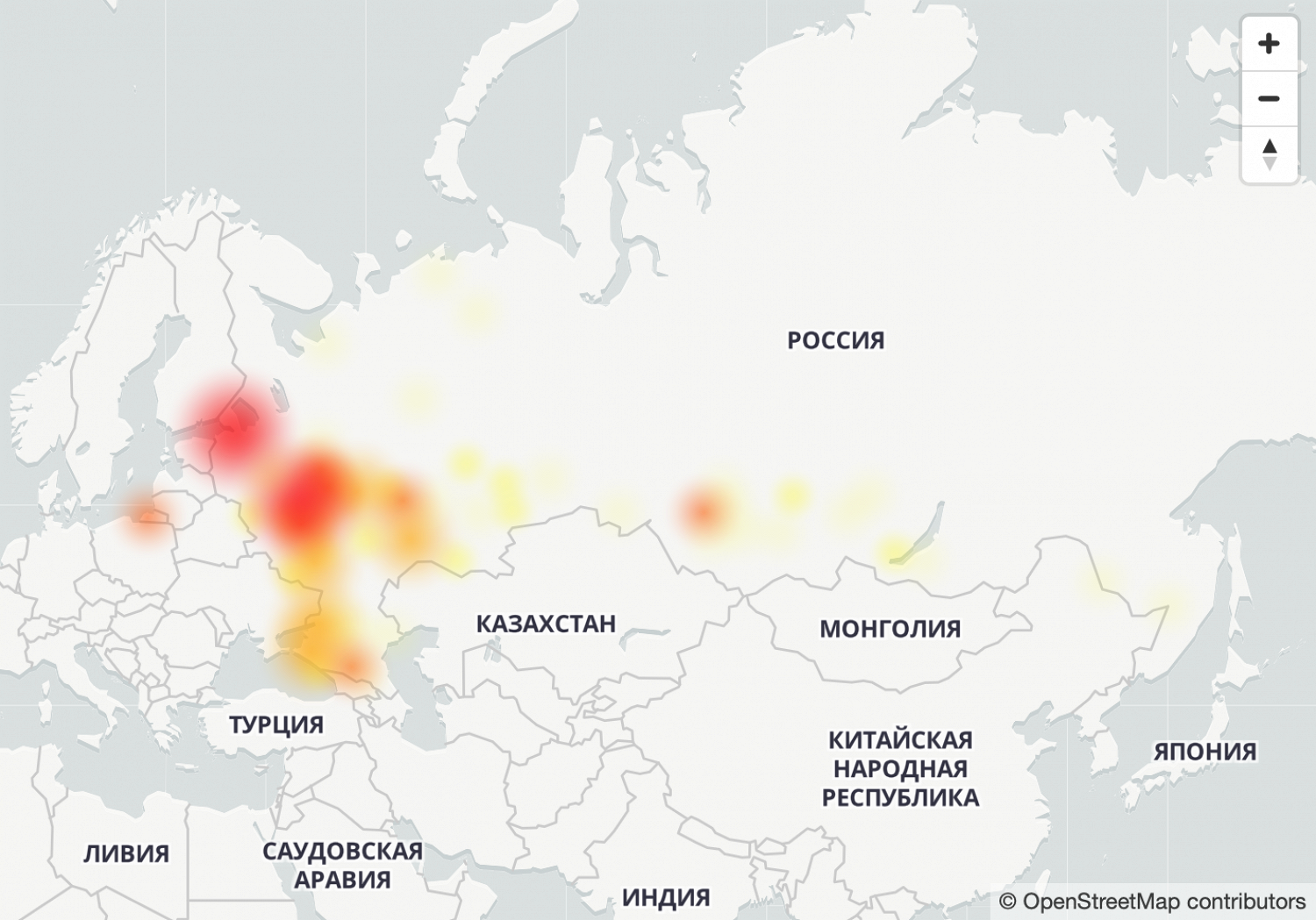 Карту неполадок «Яндекса» можно найти на сайте Downdetector.