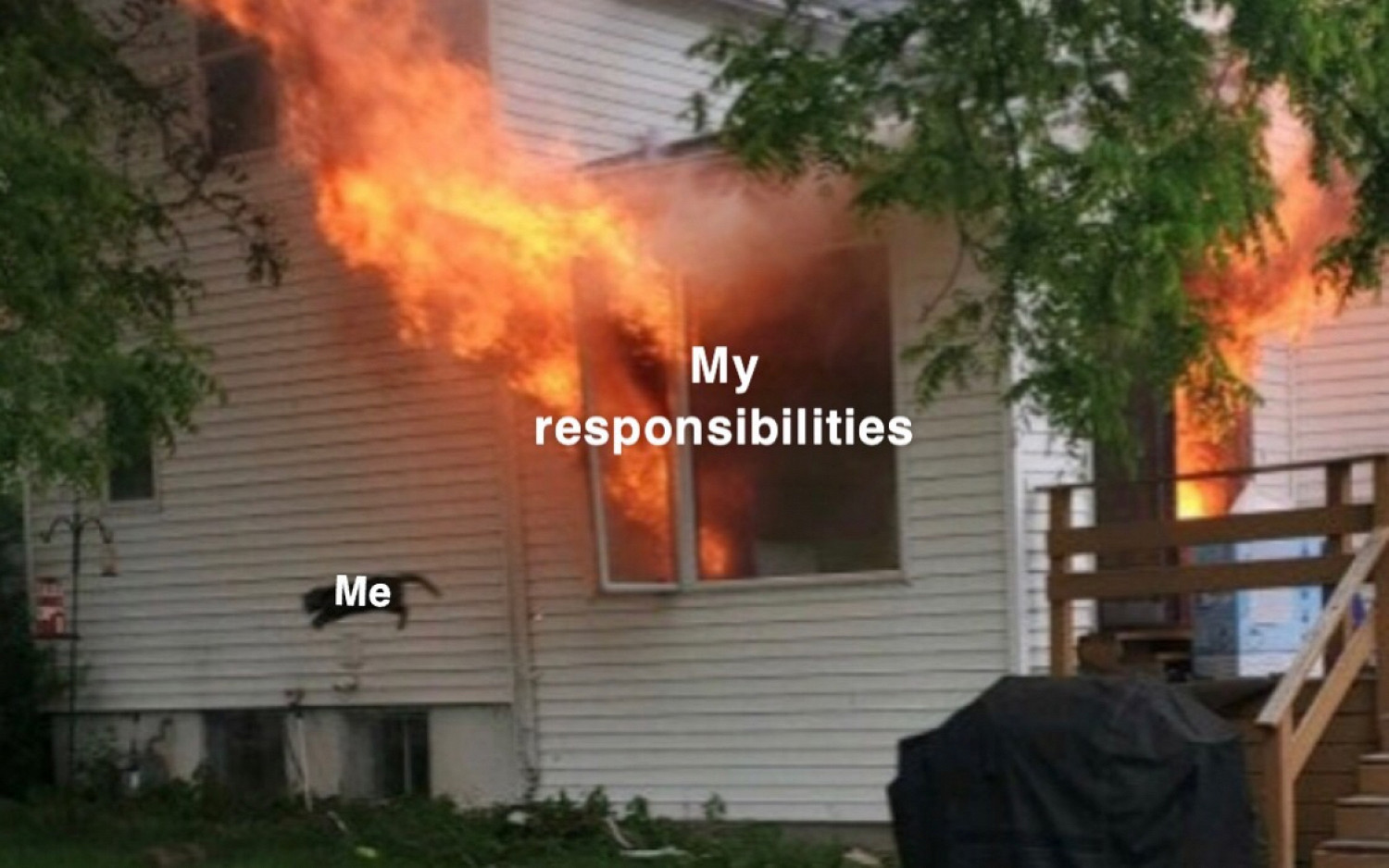 Конечно же, пользователи ассоциируют горящий дом с нашей планетой, кота — с самими собой, а мужчину на переднем плане фото — или с людьми, которые могут сделать что‑то полезное, но не делают, или с еще большими опасностями, поджидающими несчастного кота уже на улице.