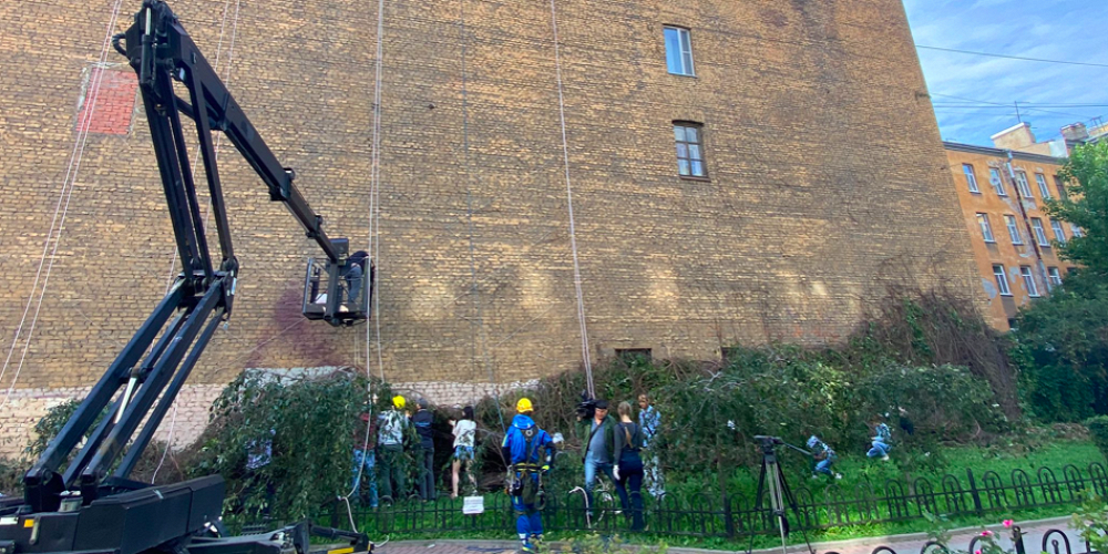 Для возвращения стены на место объединились неравнодушные местные жители и ЖЭК. Они решили вернуть виноград на место при помощи тросов — в этом добровольцам помогали альпинисты. Также в работах задействовали автовышку.
