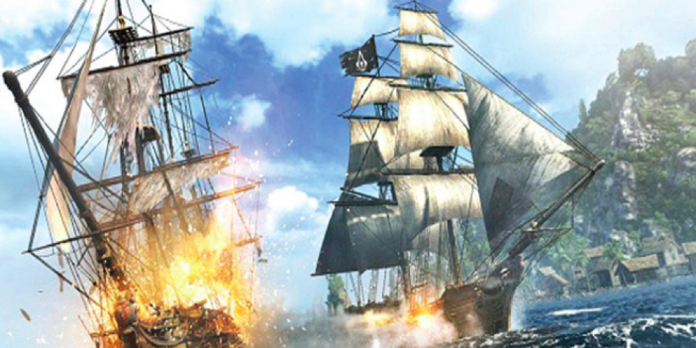 Если присмотреться, то на судне справа можно увидеть черный флаг с логотипом Assassin’s Creed.
