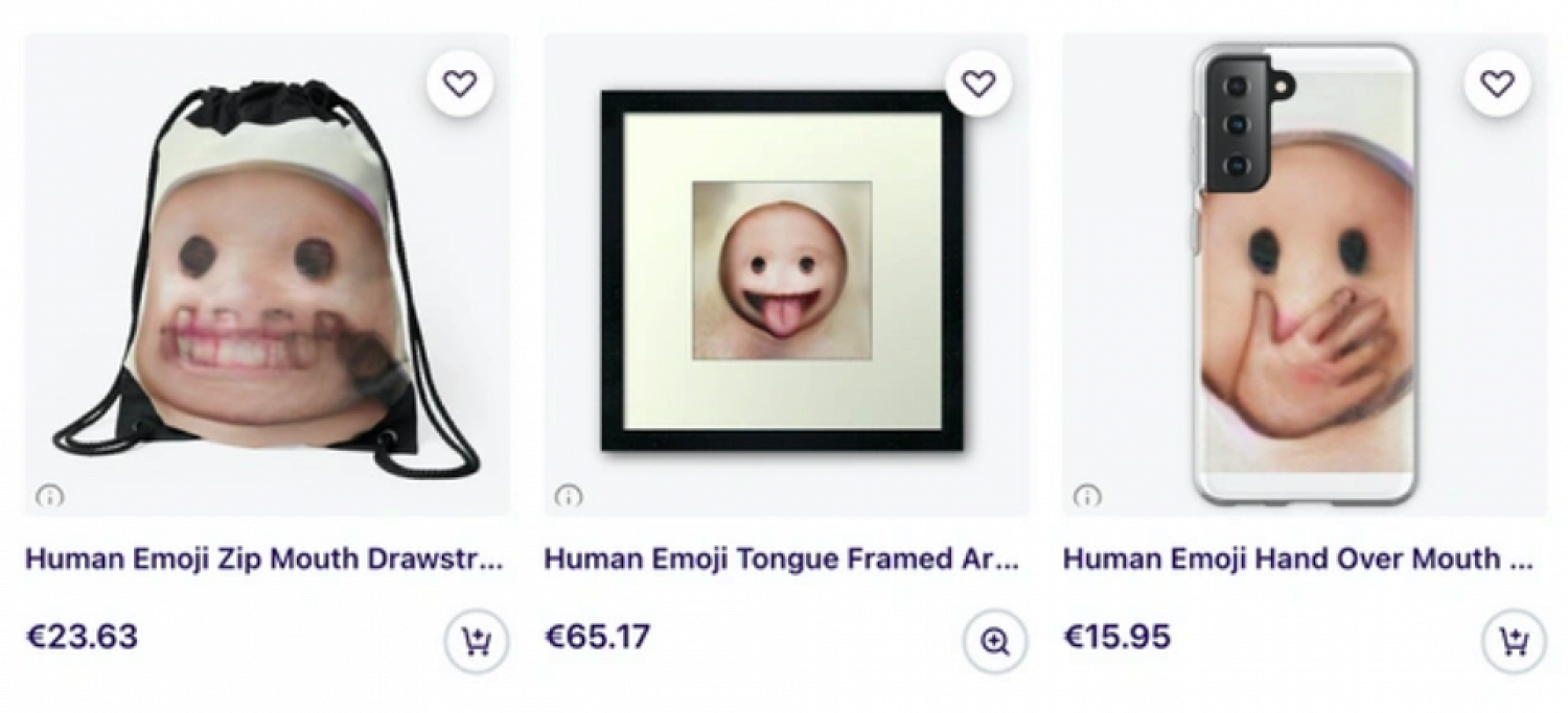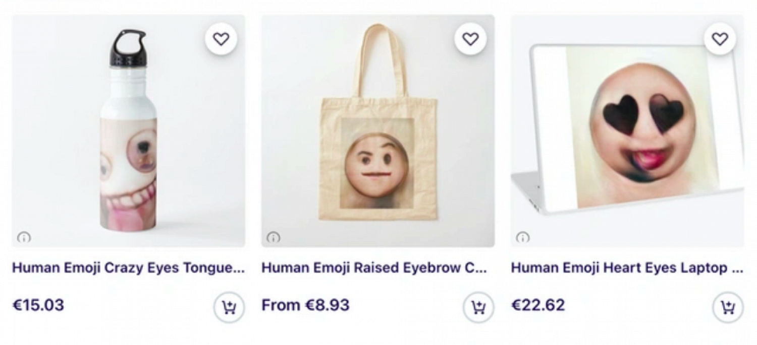 Авторы проекта также предлагают купить футболки, рюкзаки, термосы и другие вещи с напечатанными на них эмодзи. В таком виде они выглядят еще страшнее. А еще смайлики получили свой стикерпак для телеграма — его сделал пользователь Twitter из России Вадим Краев (@Not_purum).