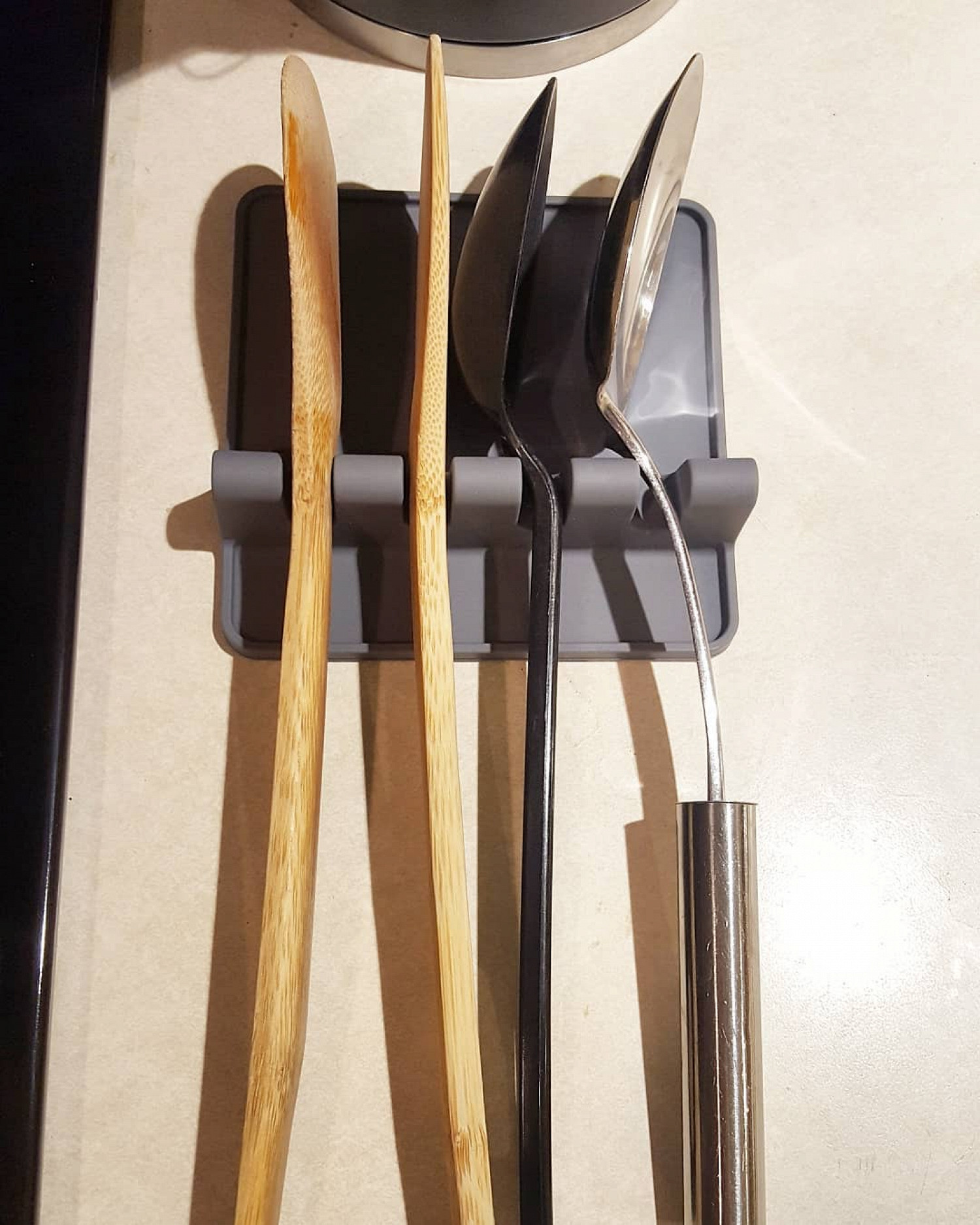 Зачастую посуду после мытья протирают или оставляют на полотенце, чтобы она обтекла. Теперь хозяевам можно избежать бесконечной стирки полотенец, поставив приборы и посуду на силиконовую подставку. Такая подставка без проблем отмывается от следов высохших капель.
