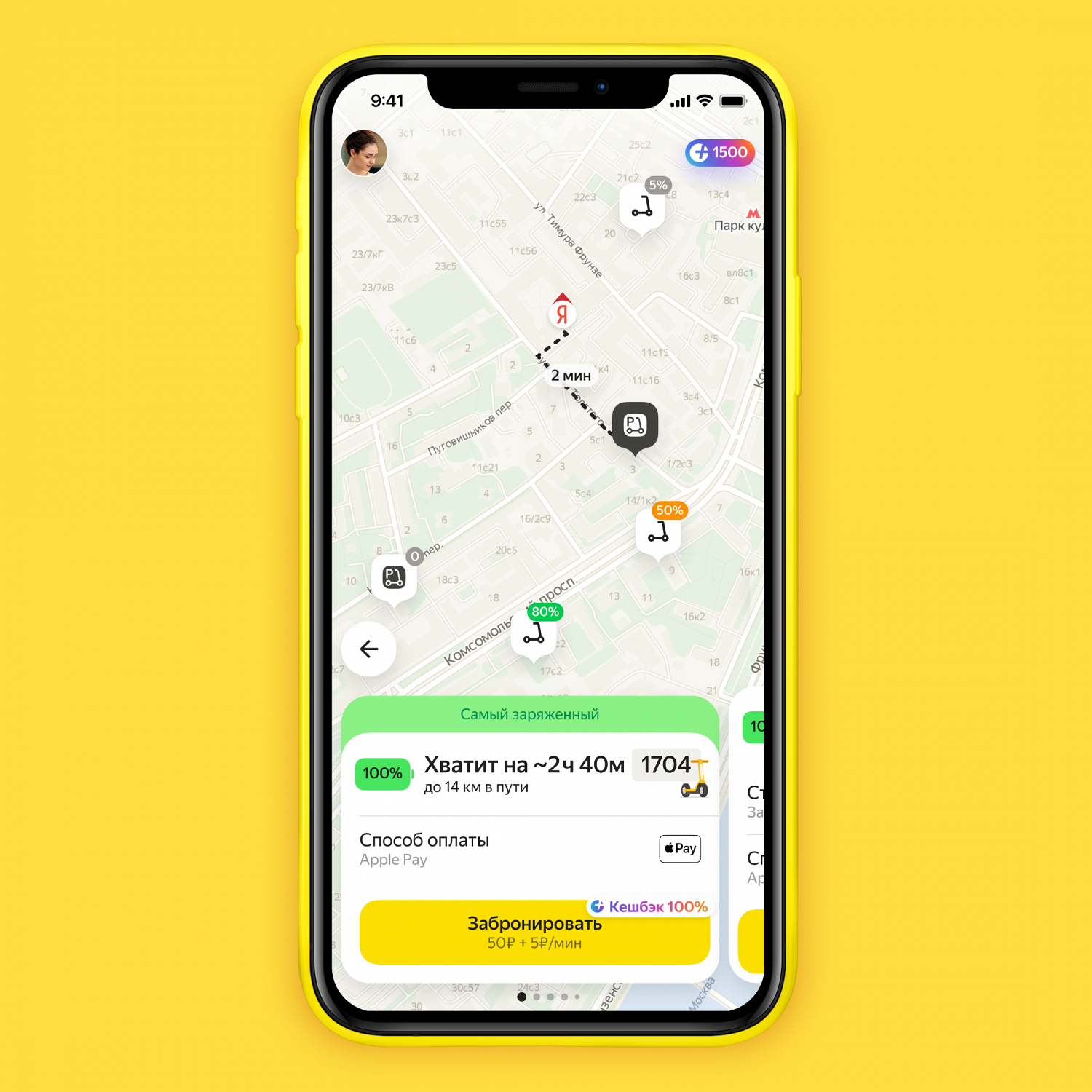 Стоимость поездки — 50 рублей за бронь и от 6 рублей в минуту за аренду. Подписчики «Яндекс.Плюса» за первую поездку получат 100% кешбэка баллами, а за каждую следующую — 25% баллами до 31 июля.
