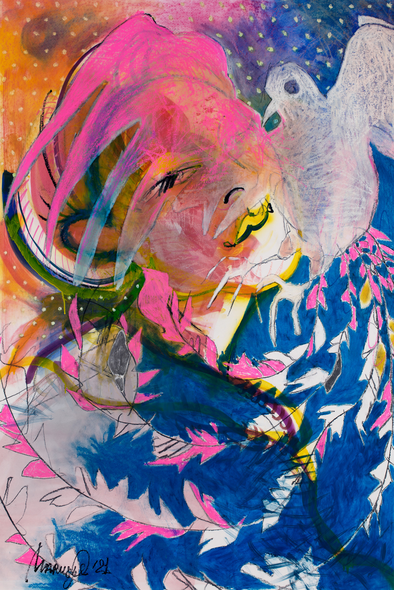 Среди ее работ — костюмы для спектакля «Мастерской Брусникина» «Splendor Solis» и иллюстрации к поэтической книге «Ты на меня смотришь». Последняя персональная выставка художницы состоялась в резиденции La Chapelle Saint Antoine на греческом острове Наксос.