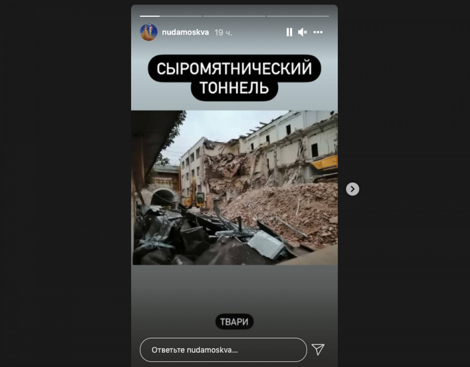 Как пишет Strelka Mag, демонтаж связан с реконструкцией Сыромятнического тоннеля, который находится неподалеку. Депутат Мосгордумы Дарья Беседина сказала, что новые пути должны пролечь по участку, где расположена правая часть здания.