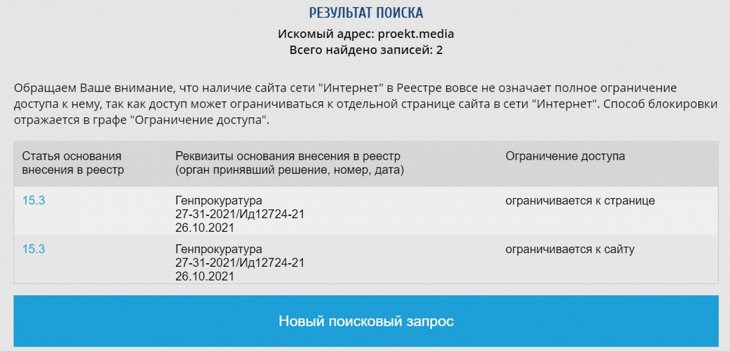 Судя по записям в реестре РКН, доступ к сайту начал ограничиваться с 26 октября по требованию Генпрокуратуры.