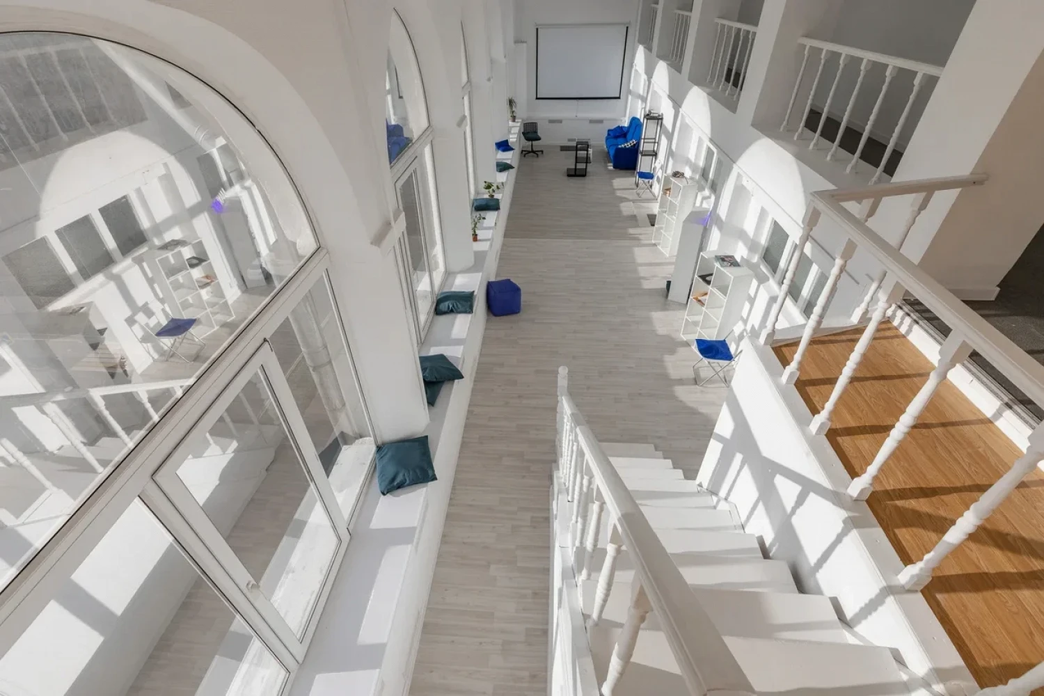 В резиденции площадью 190 квадратных метров высокие потолки и много естественного света. Пространство поделено на пять мастерских, четыре из которых предназначены для московских художников, еще в одной можно жить — в резиденции есть санузел и общая кухня. Все мастерские предоставляются сроком на 5 месяцев.