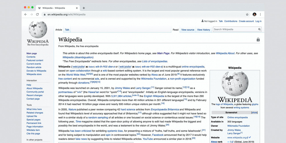 Первую запись на сайте «Википедия», созданную основателем онлайн-энциклопедии Джимми Уэйлсом и состоящую из единственной фразы «Hello World», продали в виде невзаимозаменяемого токена за 750 тыс. долларов. Об этом говорится на сайте аукционного дома Christies.