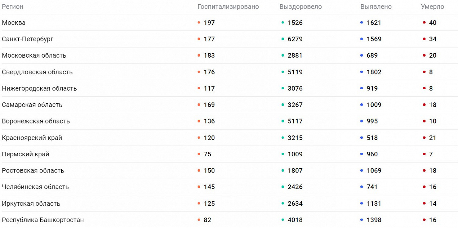 Больше всего заражений зафиксировано в Свердловской области — 1802. Следом по этому показателю идут Москва, Петербург, Башкортостан, а также Ростовская и Самарская области.