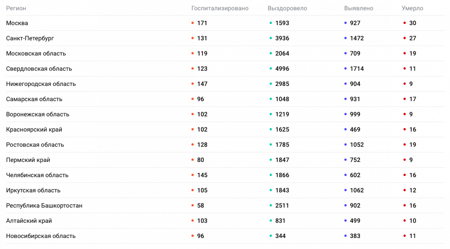 Больше всего заражений в Свердловской области — 1714. За ней следуют Петербург, Саратовская, Иркутская, Ростовская и Воронежская области.