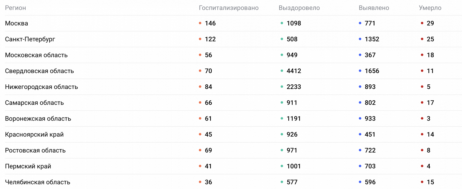 Больше всего случаев зафиксировано в Свердловской области — 1656. Следом по этому показателю идут Петербург, Воронежская, Нижегородская, Самарская области и Москва.