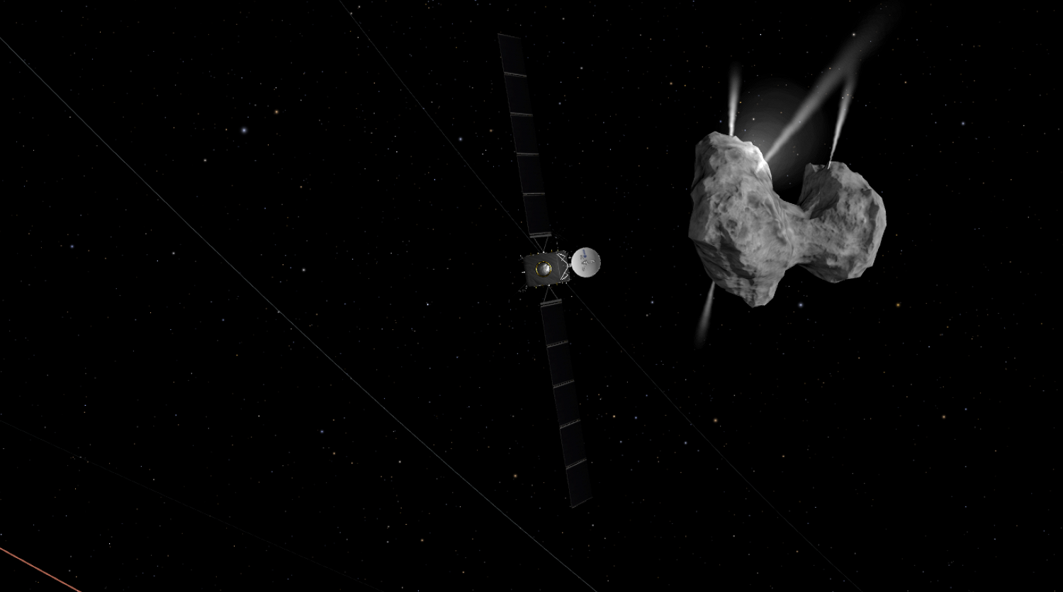 Затем пользователю предлагается познакомиться с различными открытиями в Солнечной системе и космическими миссиями. Например, с выходом аппарата «Розетта» на орбиту кометы Чурюмова — Герасименко в 2014 году.