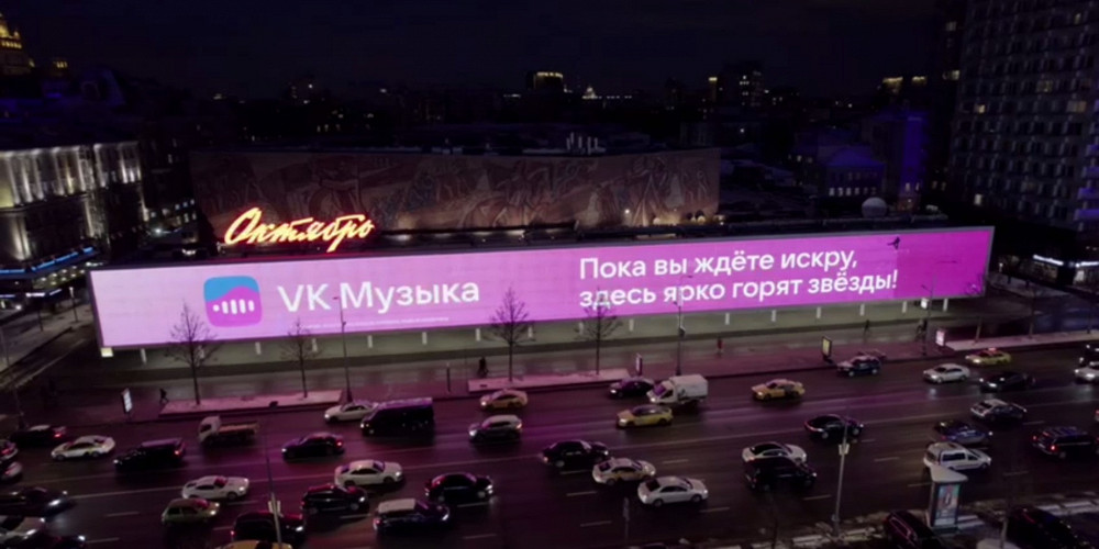 На огромном экране кинотеатра «Октябрь» появился слоган «Пока вы ждете искру, здесь ярко горят звезды». «VK Музыка» предложила много эксклюзивных релизов — от фрешменов до топовых артистов.