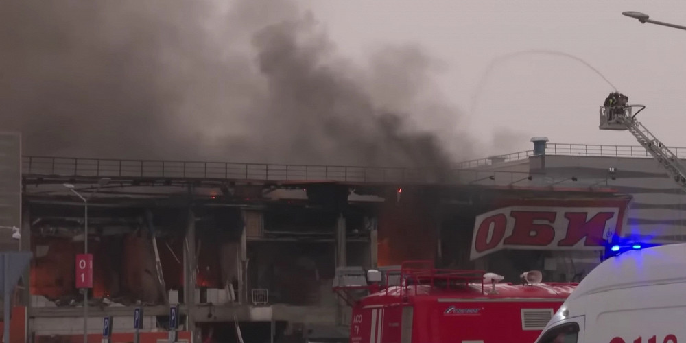 Следствие считает, что искры от сварочных работ привели к возгоранию палет с товаром магазина OBI. Начавшийся пожар охватил территорию гипермаркета. Одна из конструкций во время пожара упала и придавила охранника.