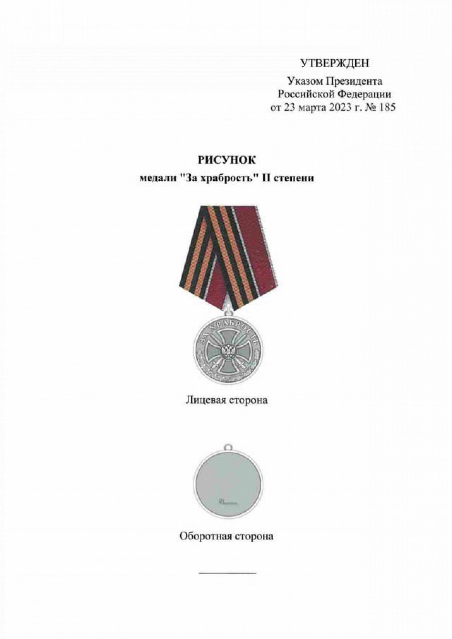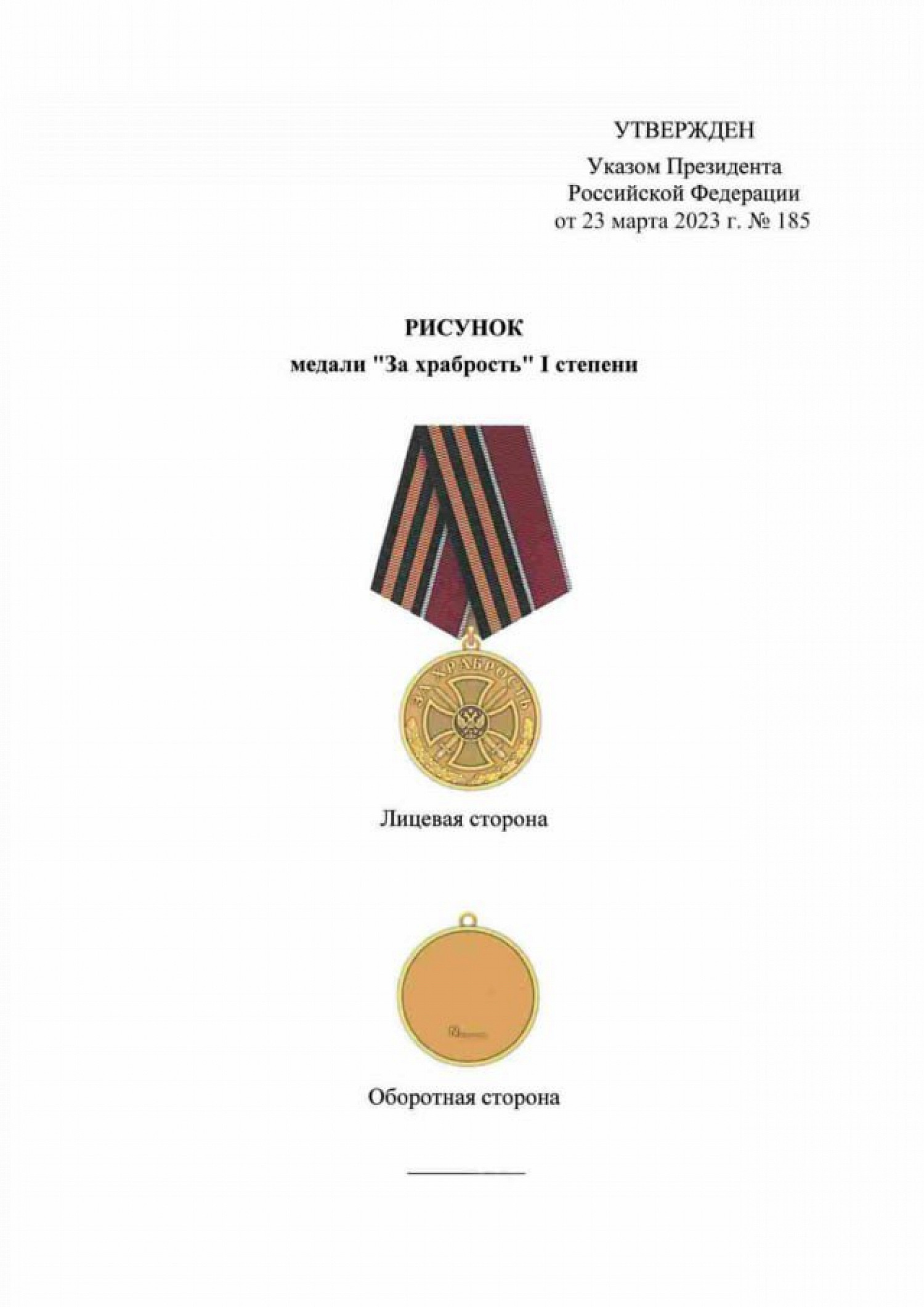 Владимир Путин учредил медаль «За храбрость». Согласно опубликованному указу, ею будут награждать россиян за «храбрость и мужество, проявленные в ходе выполнения боевых и иных операций по защите Отечества и государственных интересов РФ, а также по поддержанию или восстановлению международного мира и безопасности».