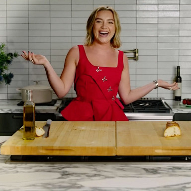 Британская актриса Флоренс Пью у многих зрителей ассоциируется не столько с кино, сколько с любовью к готовке. В начале пандемии она придумала в своем инстаграме* рубрику «Готовим с Фло», где делилась любимыми рецептами. Это настолько понравилось подписчикам, что она завела одноименный ютуб-канал, где можно найти, например, рецепты соуса дзадзики, домашнего мармелада, цукини с чесночными креветками или идеального, по ее мнению, чая. Даже в ролике для Vogue Пью готовила кростини, популярную итальянскую закуску.