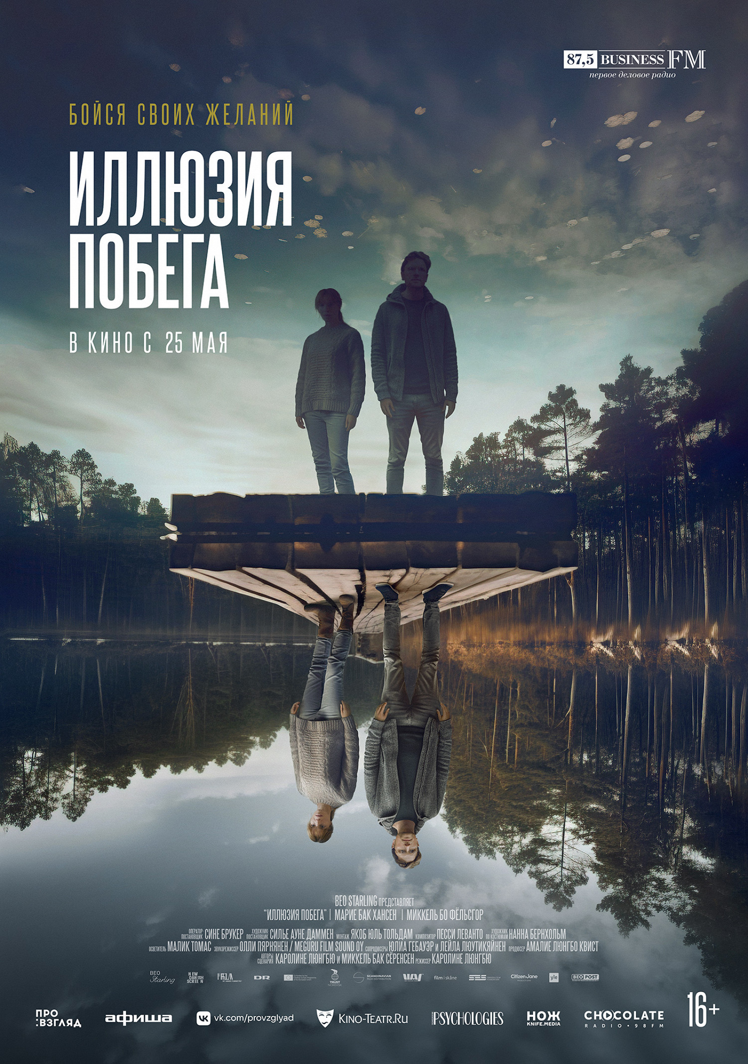 «Иллюзию побега» сняла режиссер Каролина Люнгбю, а в главных ролях сыграли Миккель Бо Фельсгорд и Мария Бах Хансен. Также среди создателей фильма — авторы хитов для Netflix, в том числе популярного сериала «Каштановый человечек».