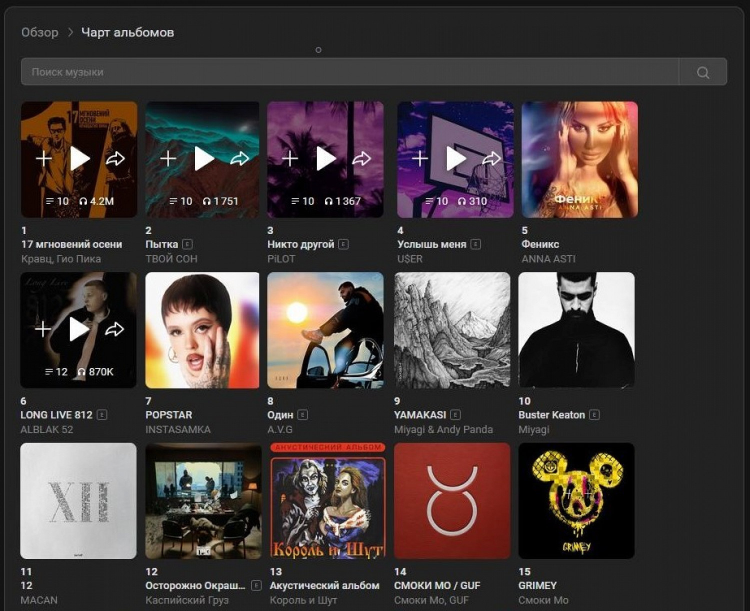 Верхние позиции чарта альбомов «ВКонтакте» заняли альбомы анонимных исполнителей, заметила «Афиша Daily». У них нет ни слушателей на других стриминговых площадках, ни публикаций в самой соцсети.