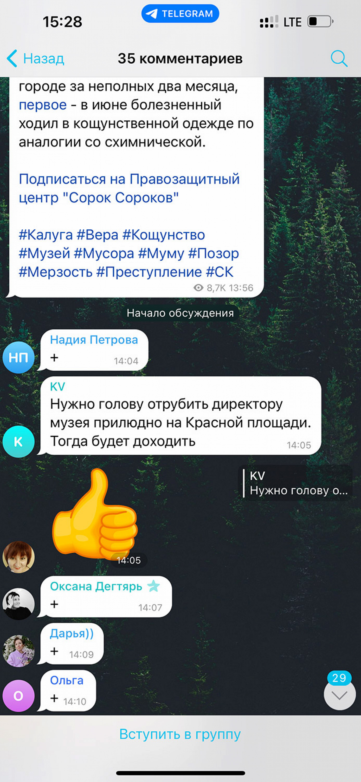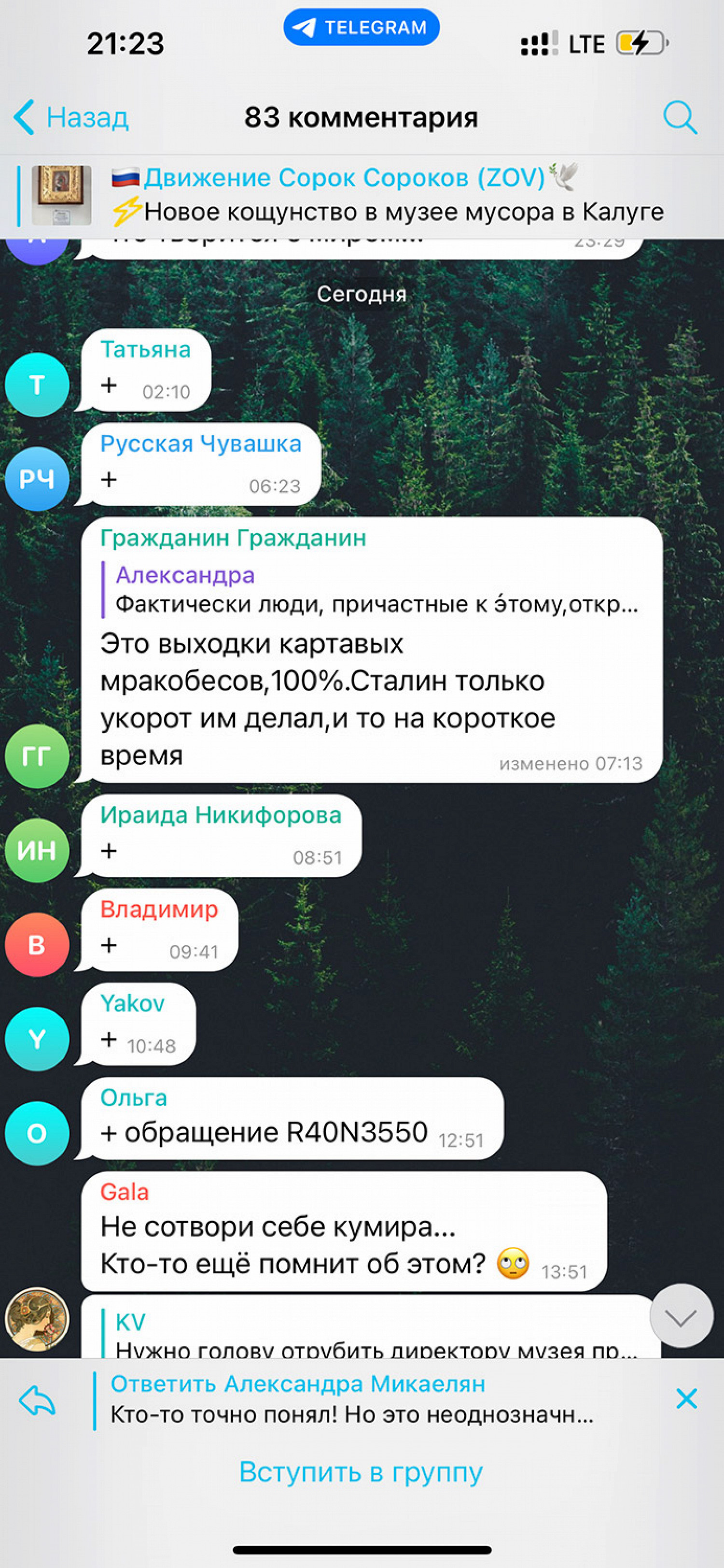 Полученная информация определит дальнейшую судьбу «iКоны» и будет опубликована на сайте музея. Представители «Муму» также опубликовали ряд сообщений в телеграм-канале православного движения. В них содержались призывы «отрубить голову» директору музея «прилюдно на Красной площади» и слова благодарности Сталину, что он в свое время якобы обуздал «картавых мракобесов».