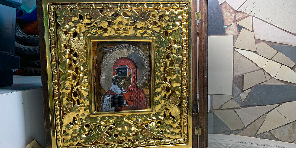 Экспонат «iКона» представляет собой образ Богородицы, собранный из старых микросхем и чипов. Активисты движения сочли, что он оскорбляет чувства верующих, и пожаловались в Следственный комитет и калужскому губернатору Владиславу Шапше.
