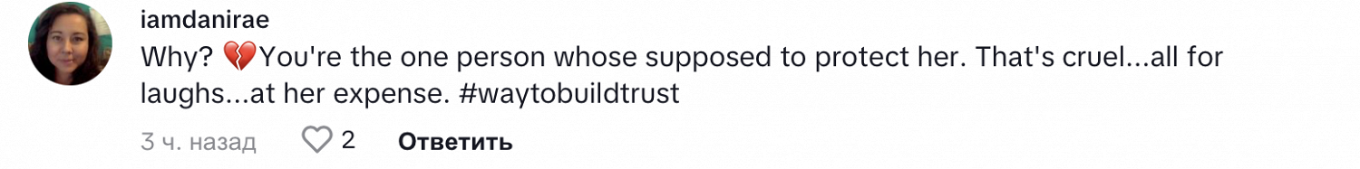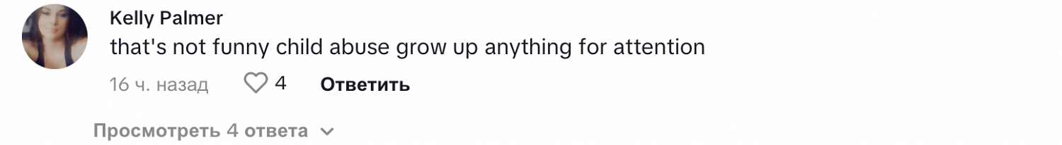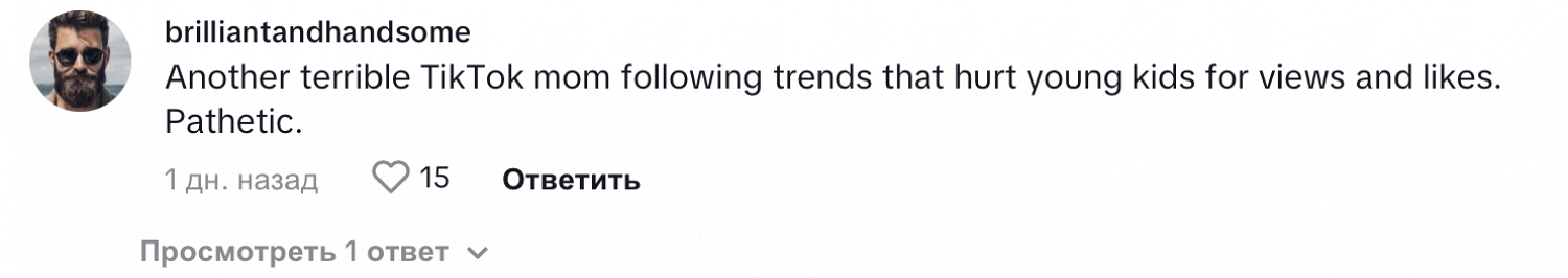 «Еще одна ужасная мама в тиктоке, следующая трендам, которые вредят маленьким детям, ради просмотров и лайков. Жалкое зрелище»