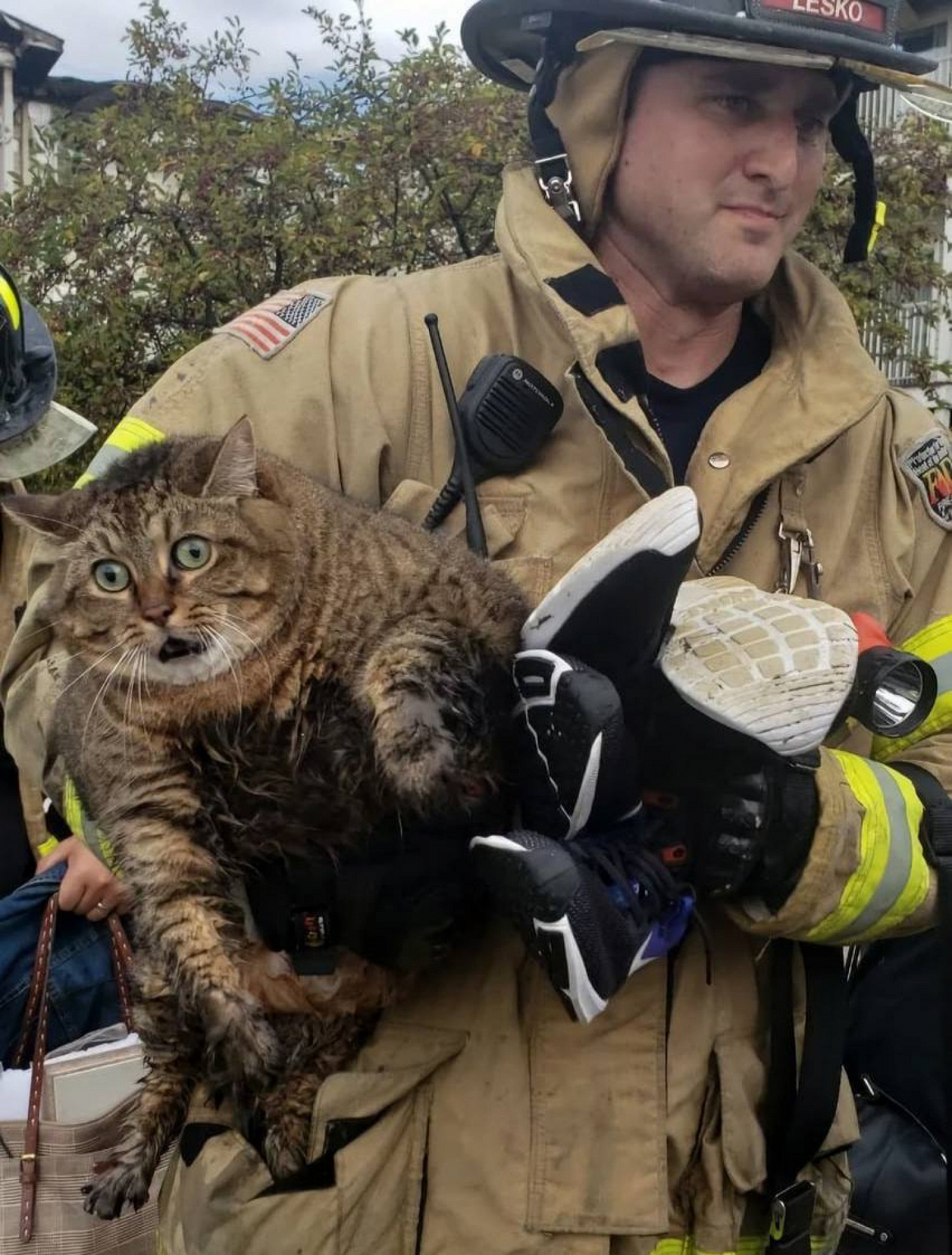 В сети набирает популярность снимок кота, спасенного из пожара в жилом комплексе для пожилых людей в США. Снимок опубликовал пользователь реддита под ником u/carneymi.