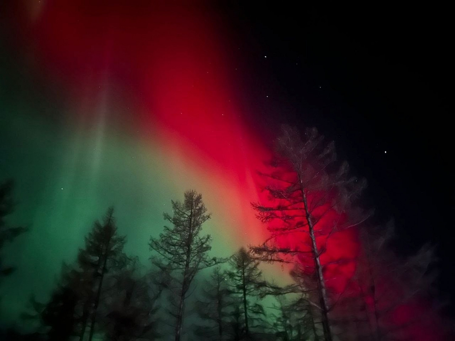 Жители северных и восточных регионов России минувшей ночью наблюдали за северным сиянием. Фотографиями красных и зеленых всполохов в небе делились жители Якутии, Камчатки, Иркутской области, Хабаровского и Забайкальского края, Кемеровской области, Западной Сибири и Урала. Самой южной точкой, где наблюдали это явление, сообщество AstroAlert называет Приморский край.