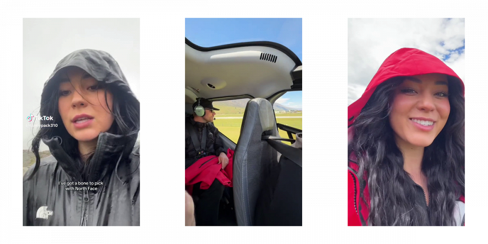В тиктоке завирусилась жалоба промокшей до нитки девушки на водонепроницаемую куртку The North Face. Бренд отреагировал и на вертолете отправил ей в горы новую.