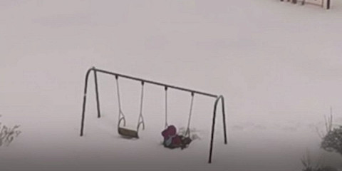 Сообщается, что ребенка снял житель многоквартирного дома. На видео ребенок пытается раскачать качели, сидя в сугробе посреди детской площадки, занесенной снегом. Взрослых в кадре не видно.