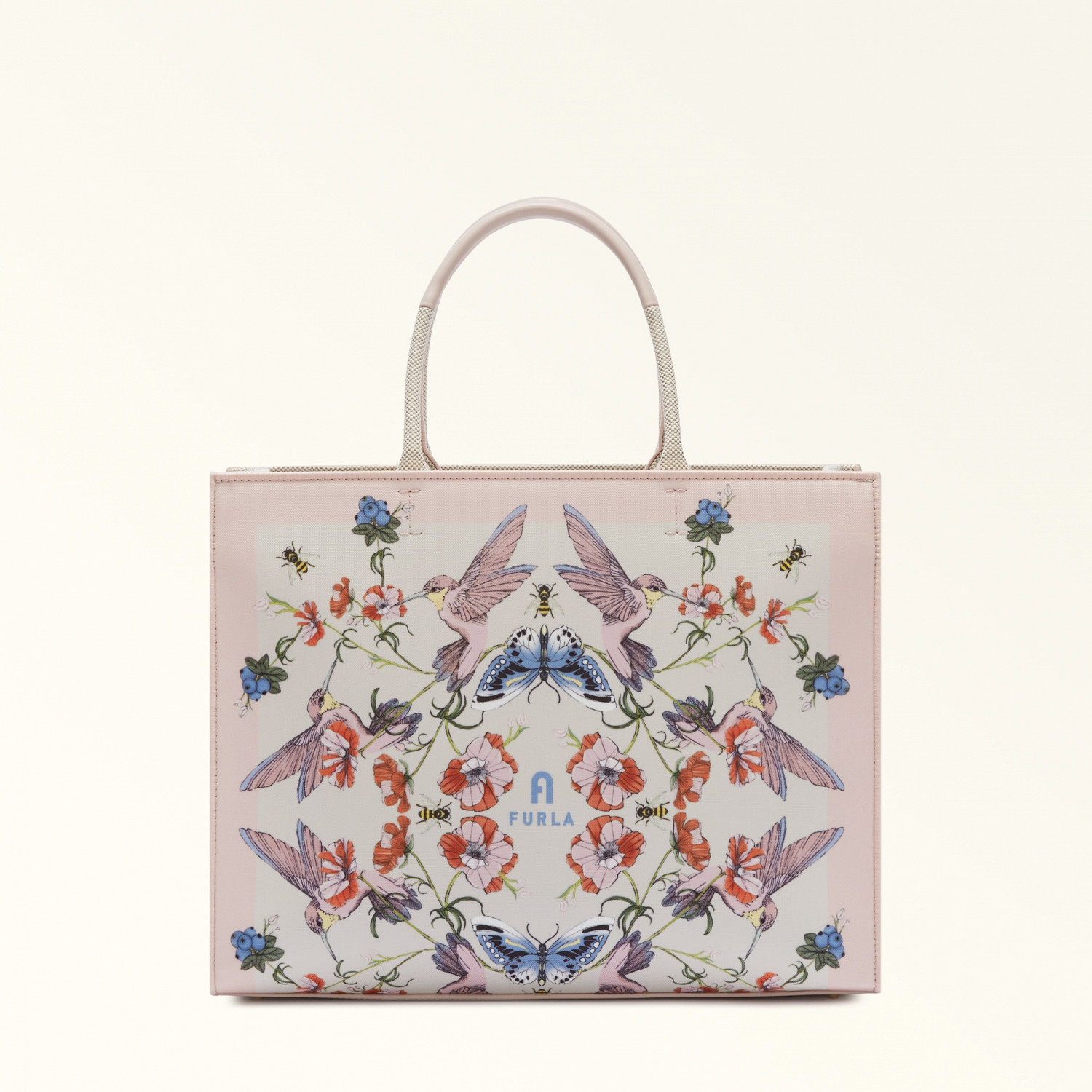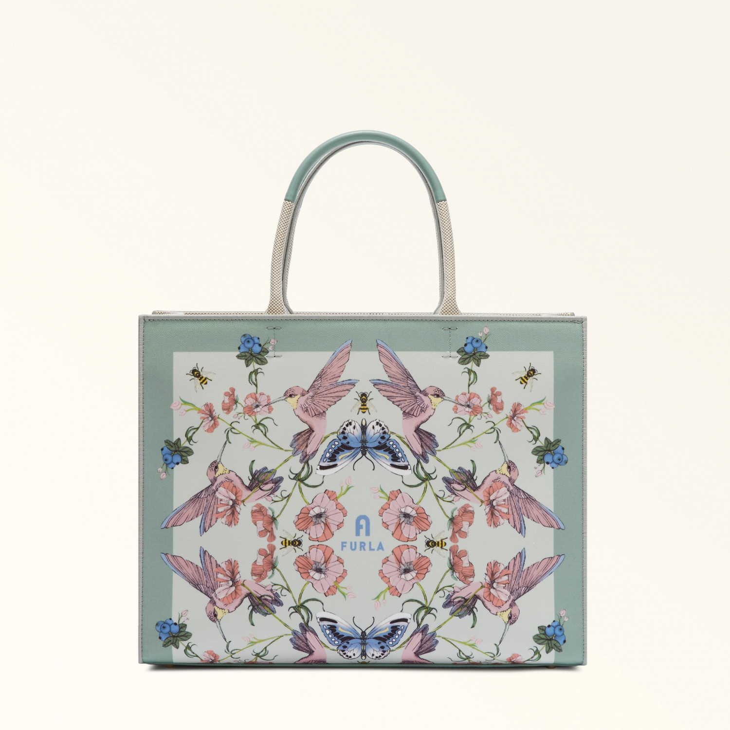 Главной моделью в линейке стала Furla Opportunity, выполненная из канвы в цветочном узоре. Сумка-тоут, известная своей вместительностью и функциональностью, появится в магазинах в трех расцветках: мятной, пыльно-розовой и белой.