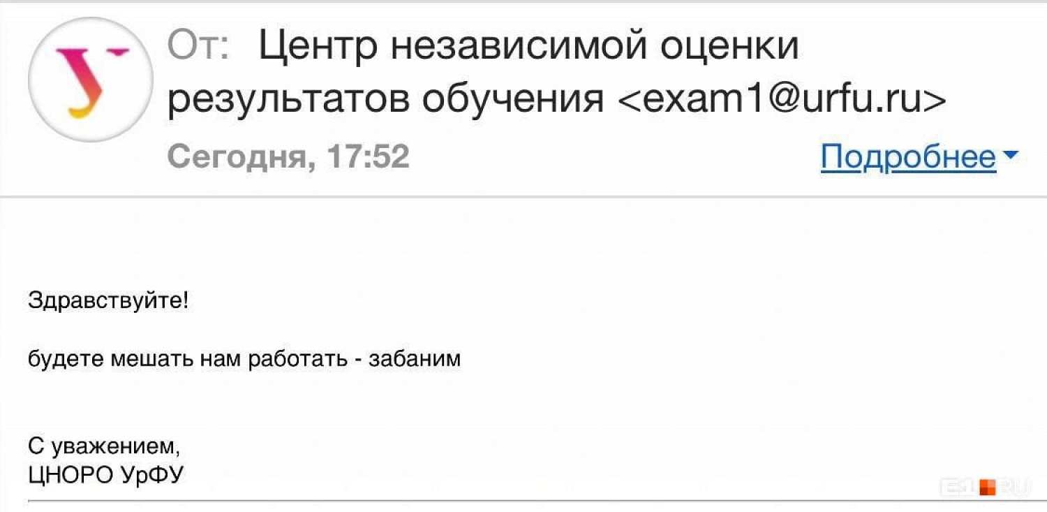 Они передали журналистам несколько электронных писем от представителей центра. В них — угрозы забанить, отказ от комментариев и обвинения в списывании. Одному из учащихся на вопрос о том, почему владельцам макбуков вдруг запретили сдавать экзамен, написали: «санкции омерики не позволяют использовать огрызок».