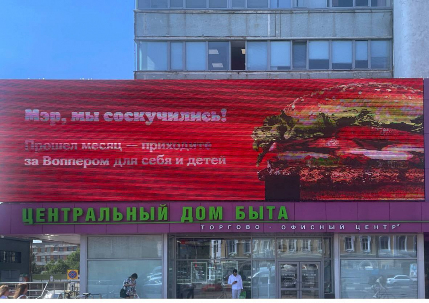 Спустя пару месяцев после его заявления над рестораном появилось адресованное мэру предложение: «Мэр, мы соскучились. Прошел месяц — приходите за „Воппером“ для себя и детей». На него обратил внимание телеграм-канал «Ольгино на Волге».