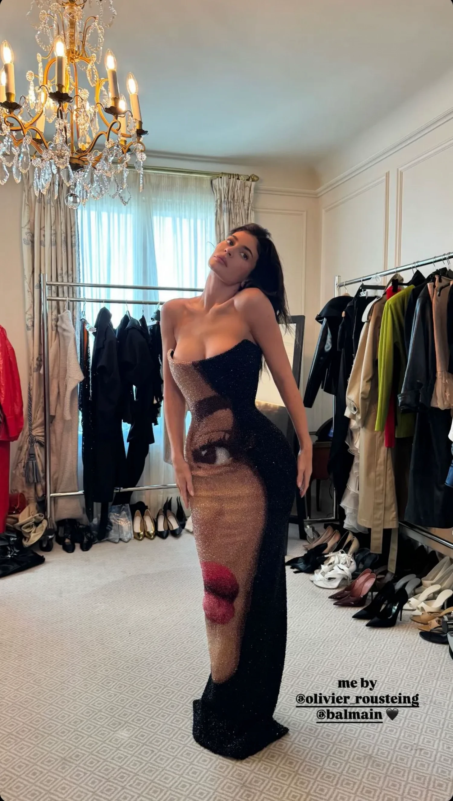 Платье стало частью новой коллекции Balmain, представленной на Неделе моды и посвященной «Иллюзиям красоты». «Я от Оливье Рустена», — подписала снимки Дженнер.
