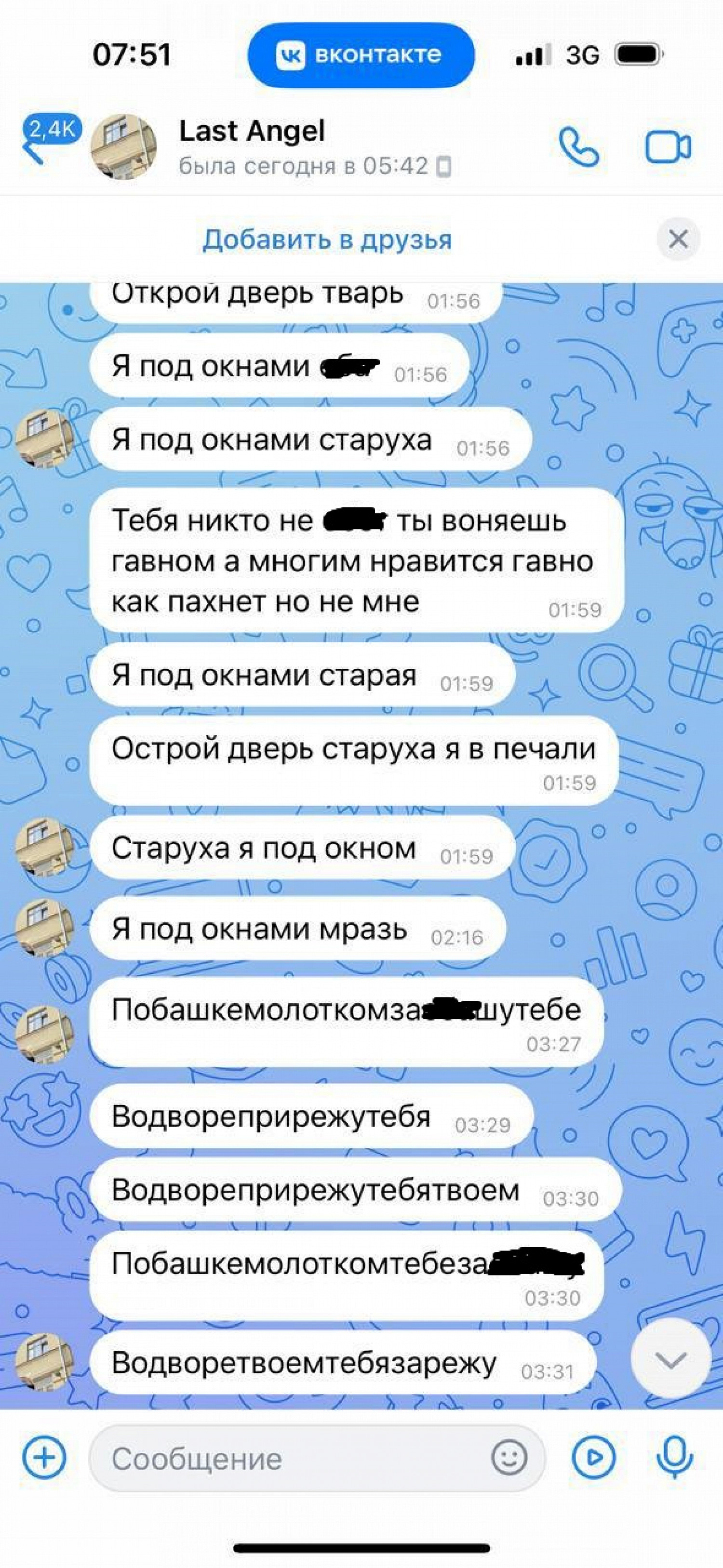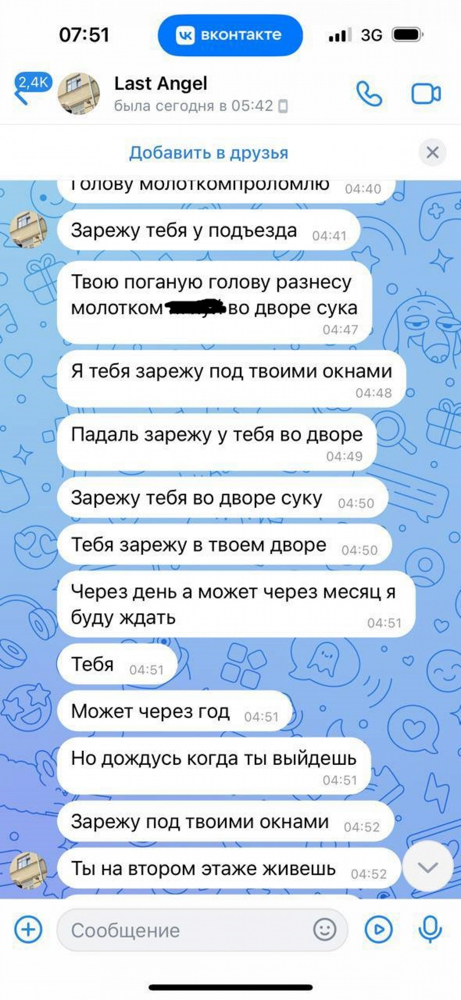 Слово поделилась, что сперва незнакомец признавался ей в любви в инстаграме* и на странице во «ВКонтакте». Когда девушка его блокировала, он создавал новые профили и вновь продолжал досаждать ей.