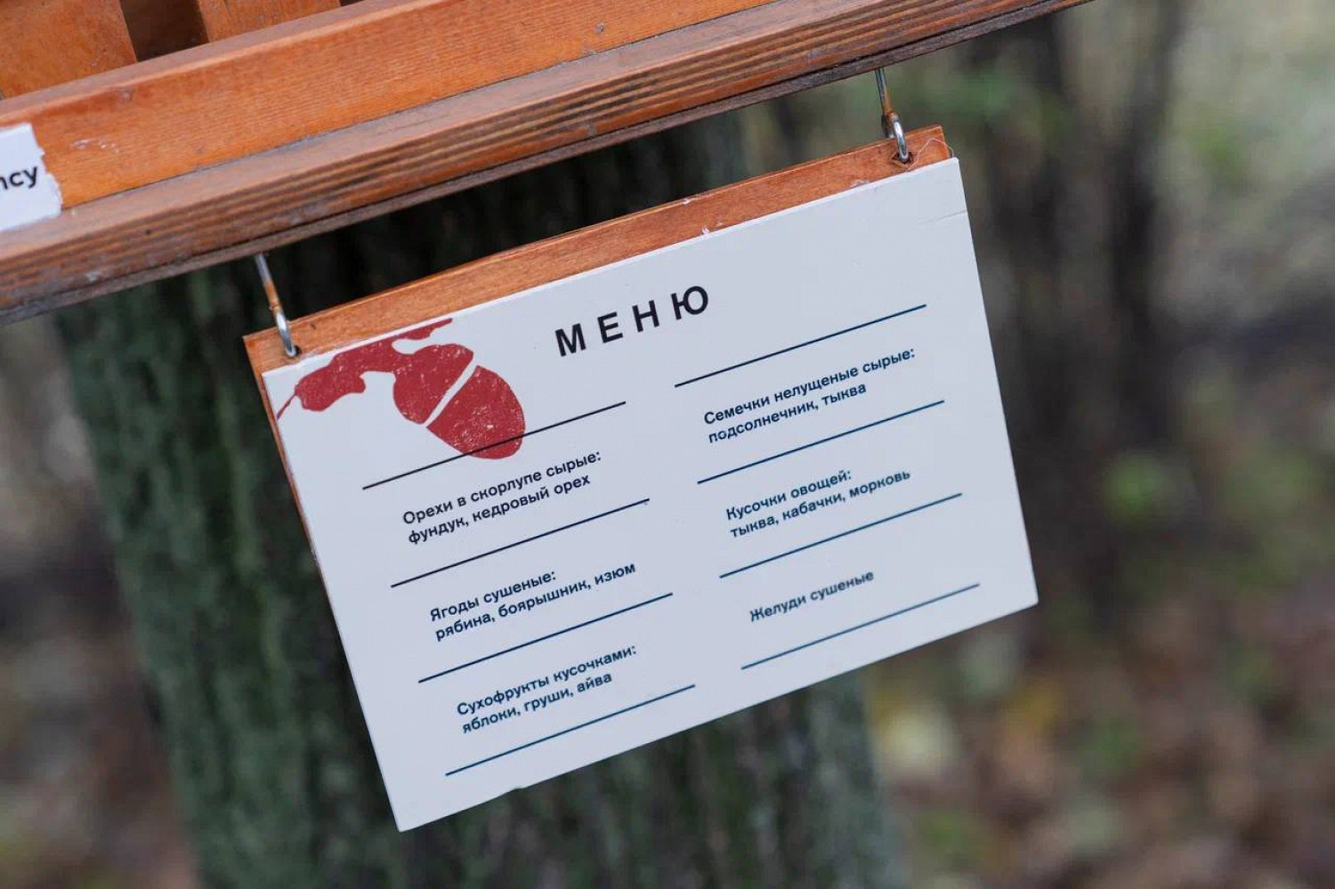 К каждой такой кормушке прикреплено меню, которое напоминает посетителям о правильном рационе грызунов. Сбалансированные блюда должны состоять из сырых орехов, неочищенных семечек и несладких сухофруктов.