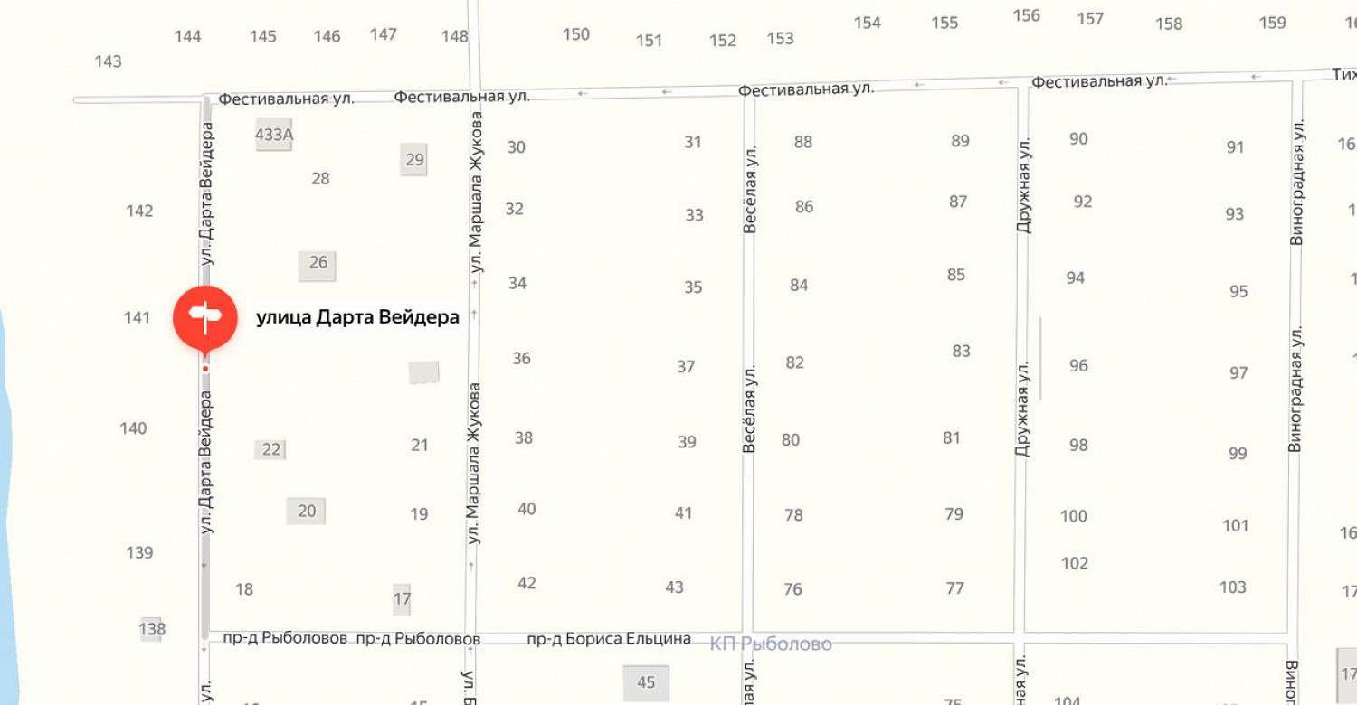 На картах Подмосковья нашли улицу Дарта Вейдера. Об этом сообщает телеграм-канал «Новости Москвы».