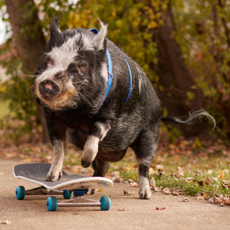 Поросенок-скейтбордист Норберт попал в Книгу рекордов Гиннесса за самый быстрый заезд на 10 метров