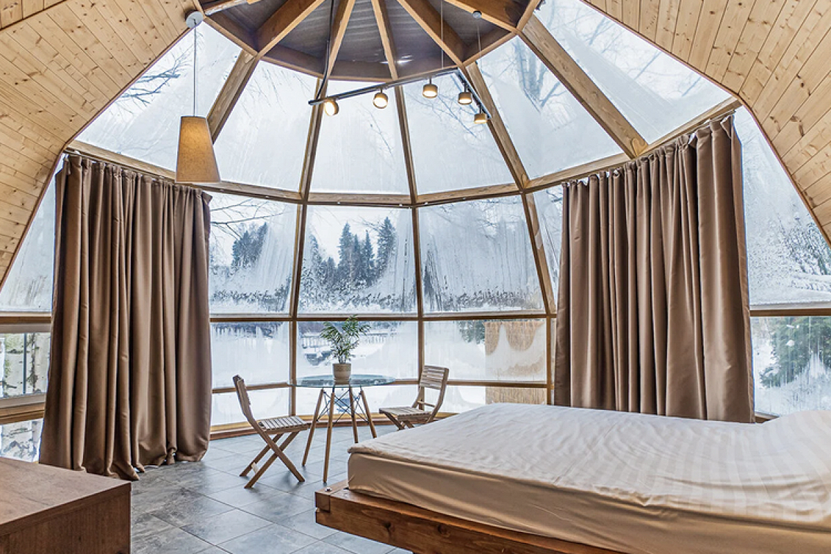 Самые необычные зимние глэмпинги: от домиков на деревьях до неотипи