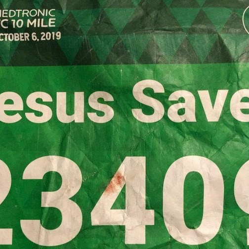 У марафонца, бежавшего в майке «Иисус спасает», случился сердечный приступ. Угадайте, кто его спас