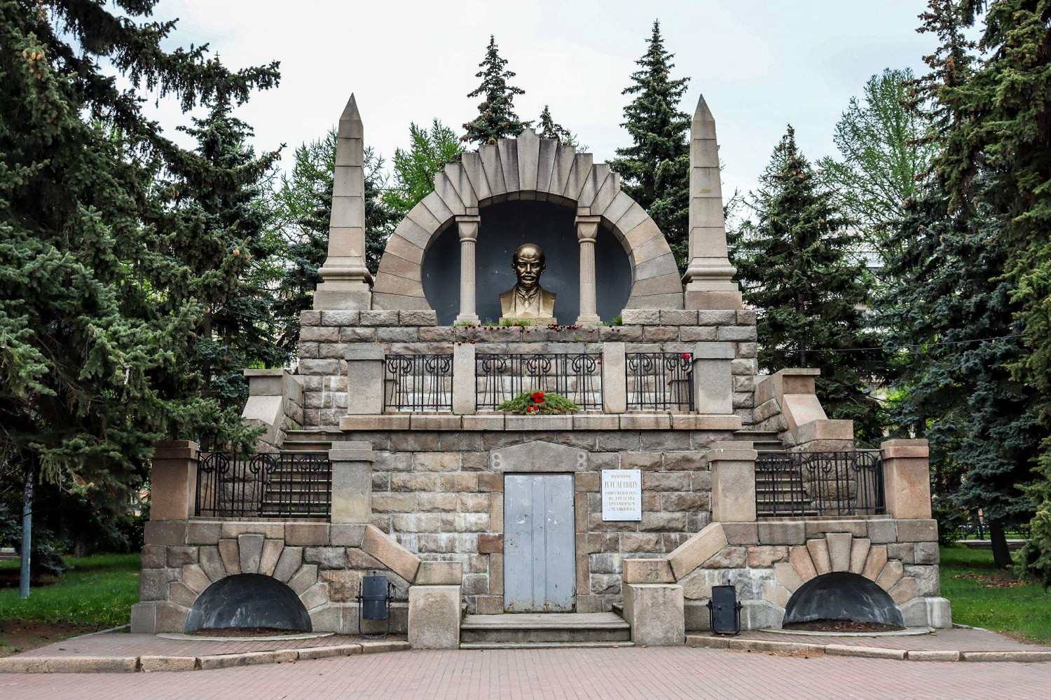 Величественный архитектурный ансамбль: в центре — Вечный огонь, рядом — памятник «Добровольцам-танкистам» и стелы с названиями фронтов. Сюда приходят возлагать цветы молодожены, здесь проходят памятные мероприятия.