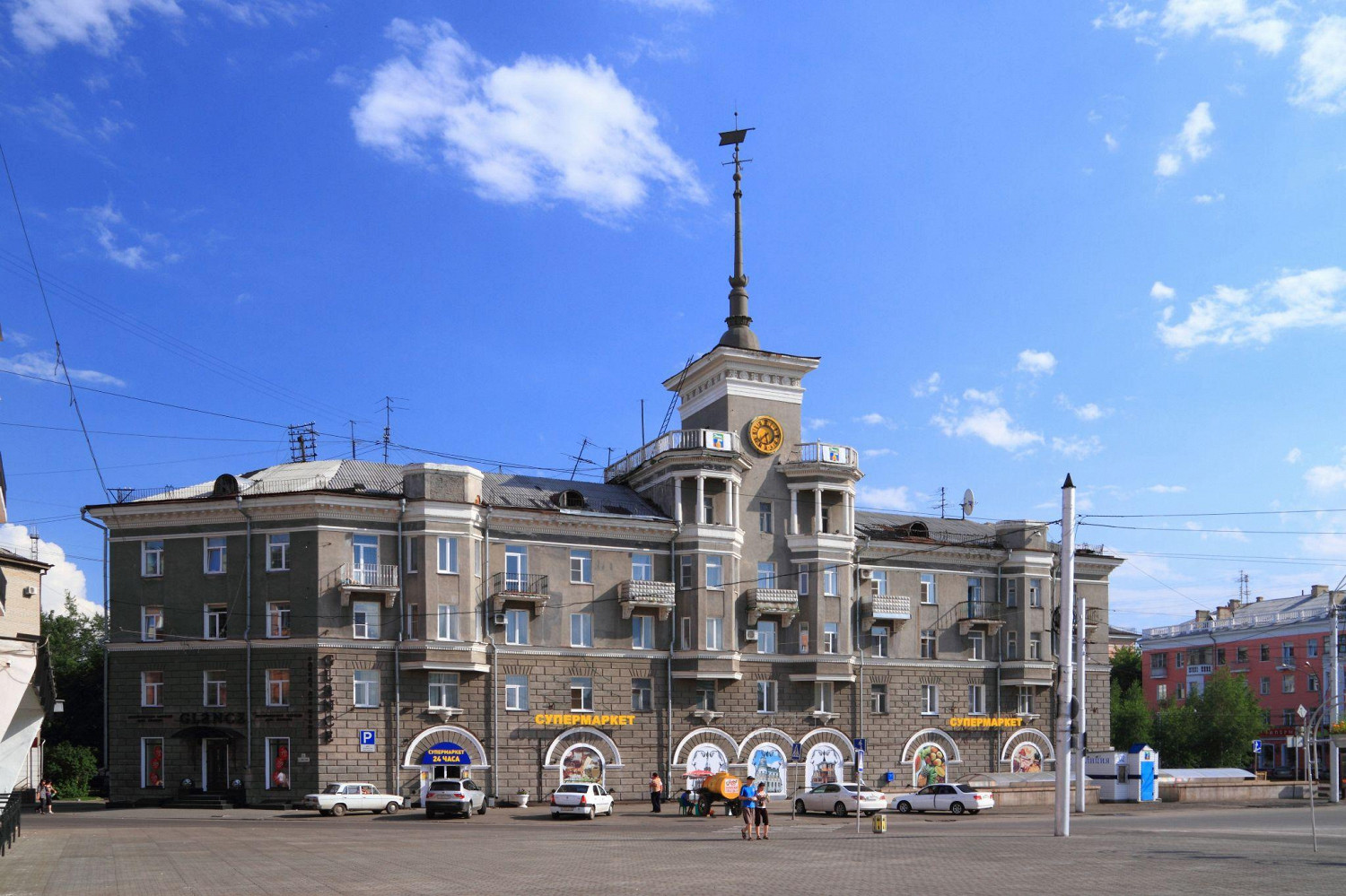 Здание, изображение которого украшало миллионы советских открыток — и до сих пор его узнаваемый силуэт с часами и флюгером доминирует над площадью Октября. Раньше здесь находился легендарный гастроном, куда горожане приезжали за дефицитными товарами.